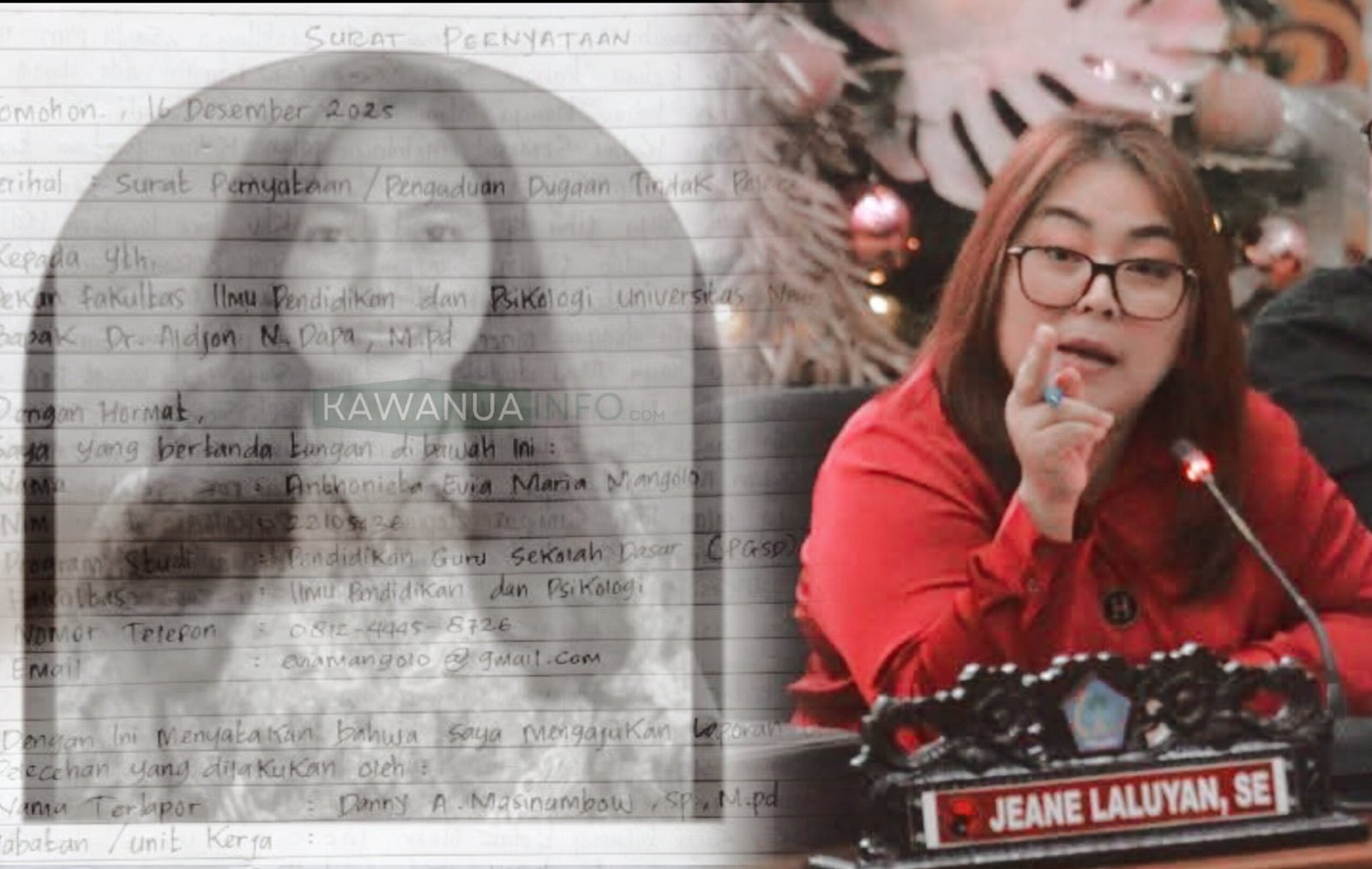 Dugaan faktor pelecehan seksual itu menguat, menyusul beredarnya sebuah foto surat pernyataan yang didalamnya memuat penjelasan kronologi terjadinya tindakan pelecehan, yang ditandatangani pembuat surat atas nama Anthonieta Evia Maria Mangolo, ditujukan kepada Dekan FIPP Unima.